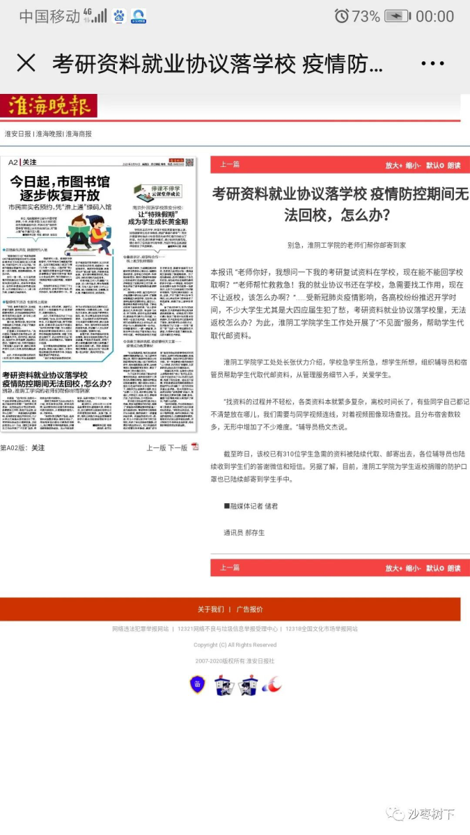 3、淮海晚報:考研資料就業(yè)協(xié)議落學校 疫情防控期間無法回校,怎么辦?