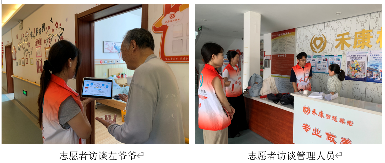 團隊訪談了醫(yī)養(yǎng)中心的左爺爺和汪奶奶。左爺爺是一位高校退休教師,志愿者們圍繞他的健康狀況、生活習(xí)慣與心理需求進行了深入交流;103歲的汪奶奶則分享了自己的長壽秘訣:心態(tài)平和、飲食清淡、每天適度活動。汪奶奶還開心地表示,年輕人的陪伴讓她感受到了溫暖與活力。